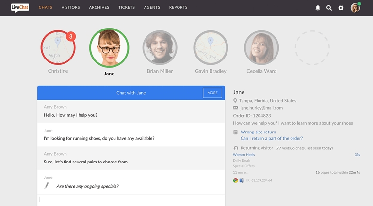 Outra ferramenta com diversas integrações e facilidade de instalar em outras plataformas de lojas virtuais. Entre suas funcionalidades, ele permite que visualize as mensagens enquanto o visitante ainda as escreve; etiquetar suas conversas, de maneira que saiba antecipadamente sobre o assunto que deverá tratar com um usuário e compartilhamento de arquivos.